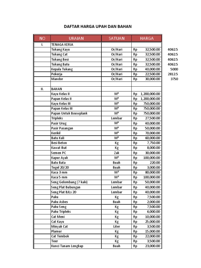 Daftar Harga Upah Dan Bahan Sumber : www.scribd.com